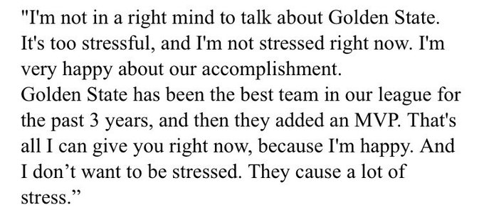 While speaking to reporters after his team closed out the Boston Celtics, LeBron said he was not in the right frame of mind to talk about the challenges the Warriors present because it is “too stressful.”